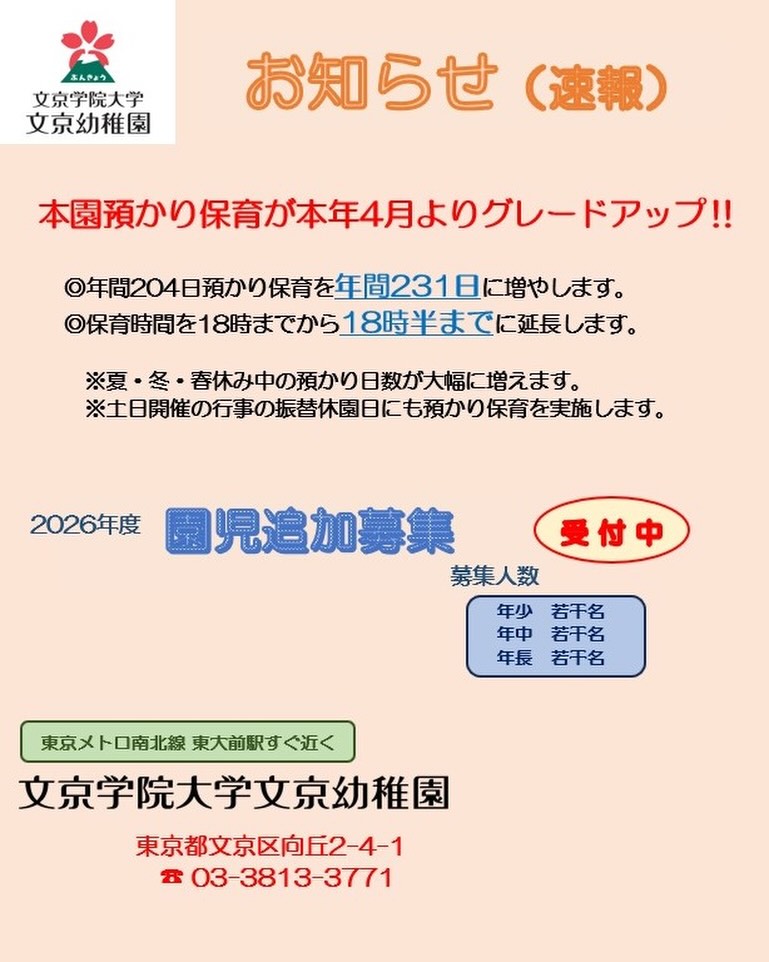 #文京幼稚園 #文京区私立幼稚園 #文京区幼稚園 #文京区保育園 #幼稚園預かり保育