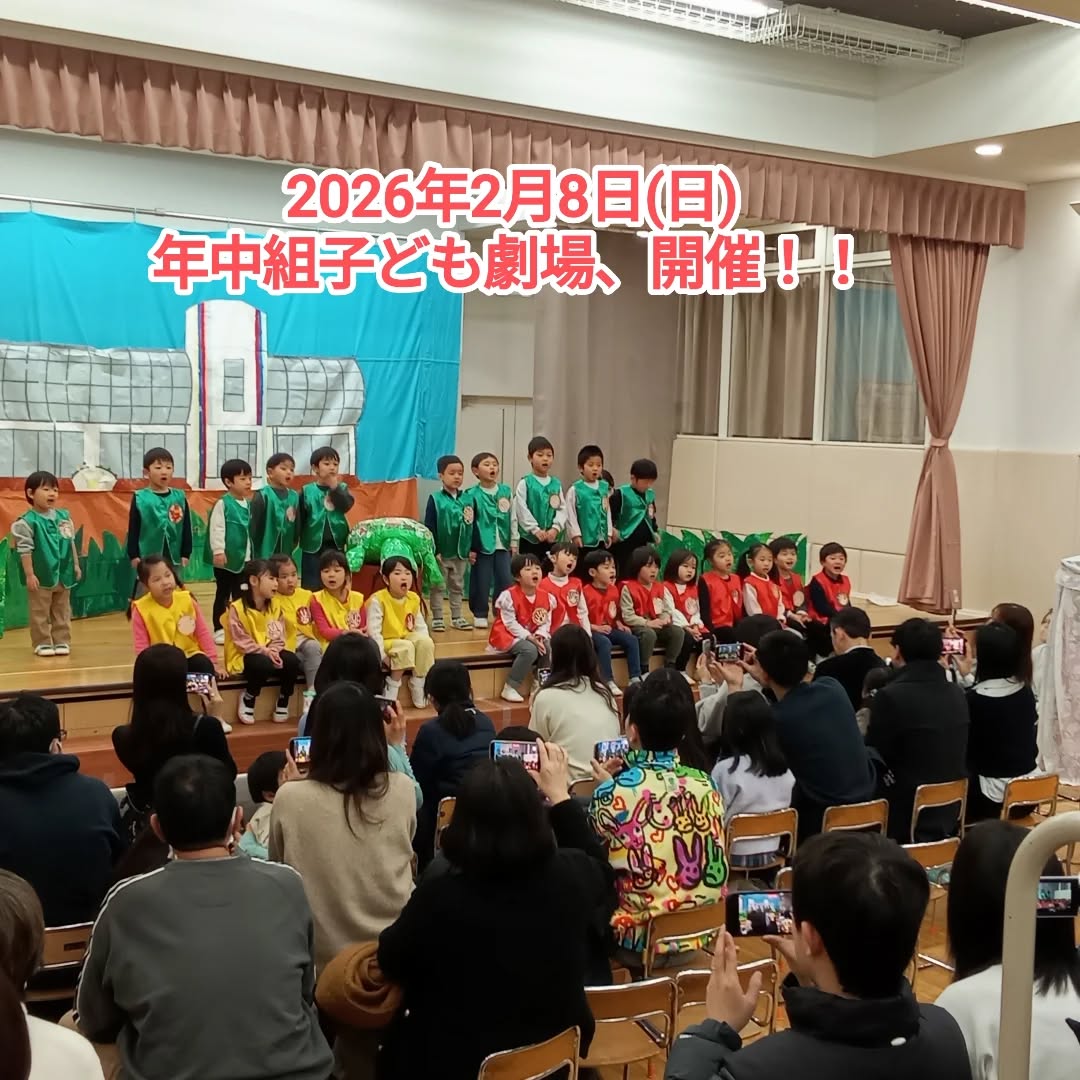 2026年1月29日.30日、『子ども劇場』に向けて、毎日クラスや学年で様々な活動に取り組んでいる年中組・年長組ですが、2日間で他学年に披露する機会としてリハーサルを行いました。…作成中…